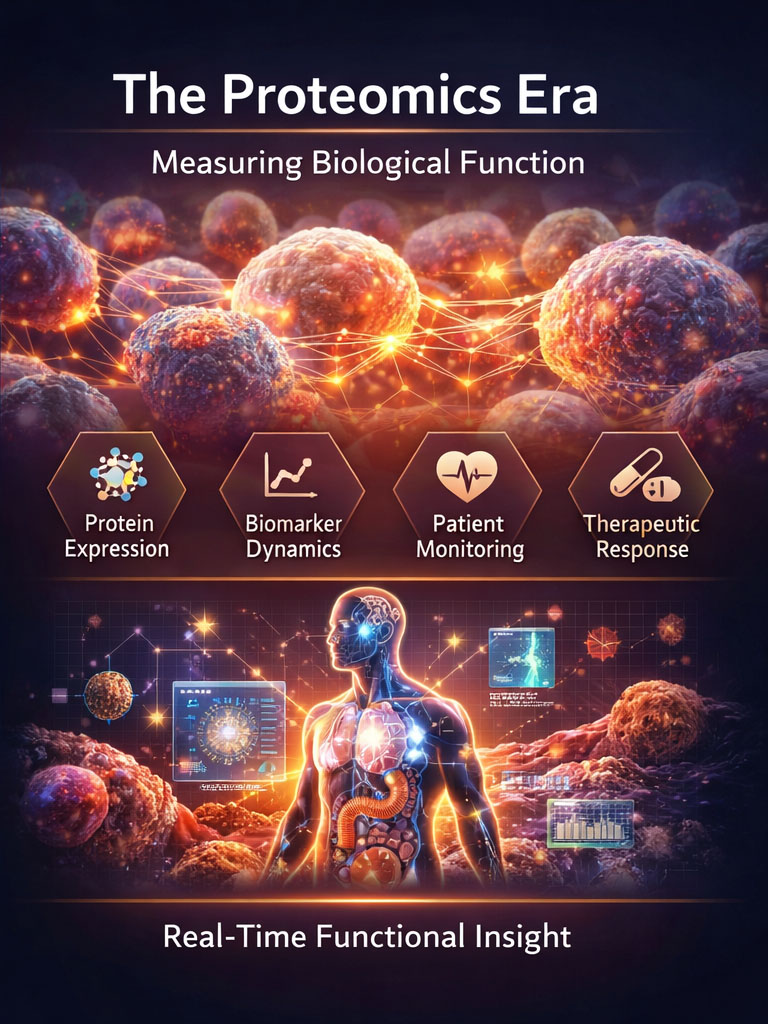 Healthcare is undergoing a structural transition. Genomics established the molecular blueprint, but blueprints do not drive clinical decisions — biological function does. Early detection, continuous monitoring, mechanism-driven therapy selection, and AI-enabled interpretation all require real-time measurement of protein activity, immune architecture, and disease-state dynamics. Proteomics is the modality that captures biological execution. Complete360® transforms proteomics from fragmented research into scalable clinical infrastructure capable of powering that transition.